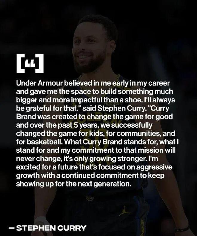 公司决定计划将“库里品牌”从安德玛业务体系中分离,结束这段十余年来重新定义性能产品与运动员主导叙事的合作伙伴关系。